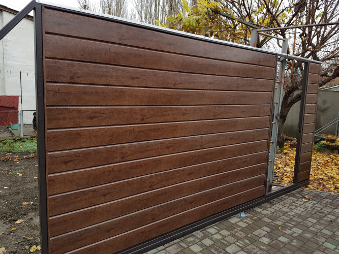 Специальные полимерные накладки и ролики препятствуют повреждению покрытия створок при их закрытии и соприкосновении с воротной рамой. |